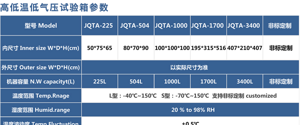 產(chǎn)品型號(hào):JQTA-504 品牌:劍 喬 用途:高低溫低氣壓試驗(yàn)箱,簡稱低氣壓試驗(yàn)機(jī)、低氣壓(高度)試驗(yàn)箱、高低溫濕熱低氣壓試驗(yàn)箱,適用于電工、電子產(chǎn)品及其他產(chǎn)品、零部件及材料進(jìn)行低氣壓試驗(yàn)的環(huán)境試驗(yàn)箱設(shè)備,可滿足電工咨詢熱線:13829135130