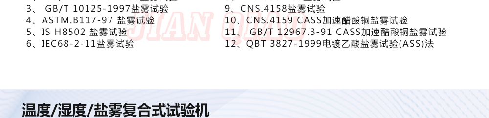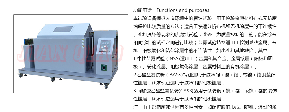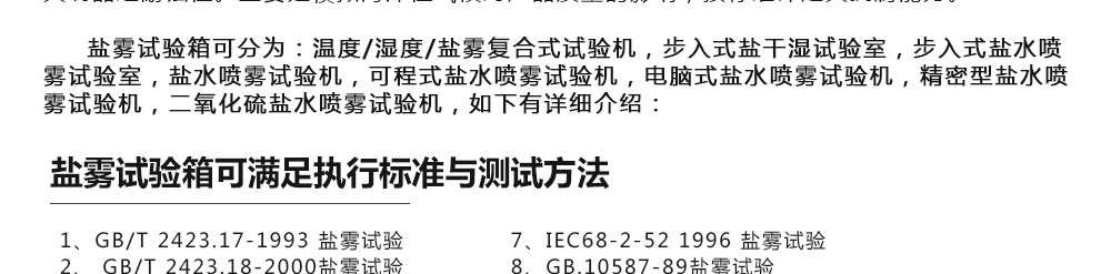 用途:鹽霧試驗箱可分為:溫度/濕度/鹽霧復合式試驗機,步入式鹽干濕試驗室,步入式鹽水噴霧試驗室,鹽水噴霧試驗機,可程式鹽水噴霧試驗機,電腦式鹽水噴霧試驗機,精密型鹽水噴霧試