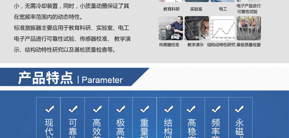 用途:標準激振器是利用永久磁鋼形成靜態磁場,不需要額外的勵磁電源,簡化了對功率放大器的要求,發熱量小,無需冷卻裝置,同時,小質量動圈保證了其在寬頻率范圍內的動態特性。標